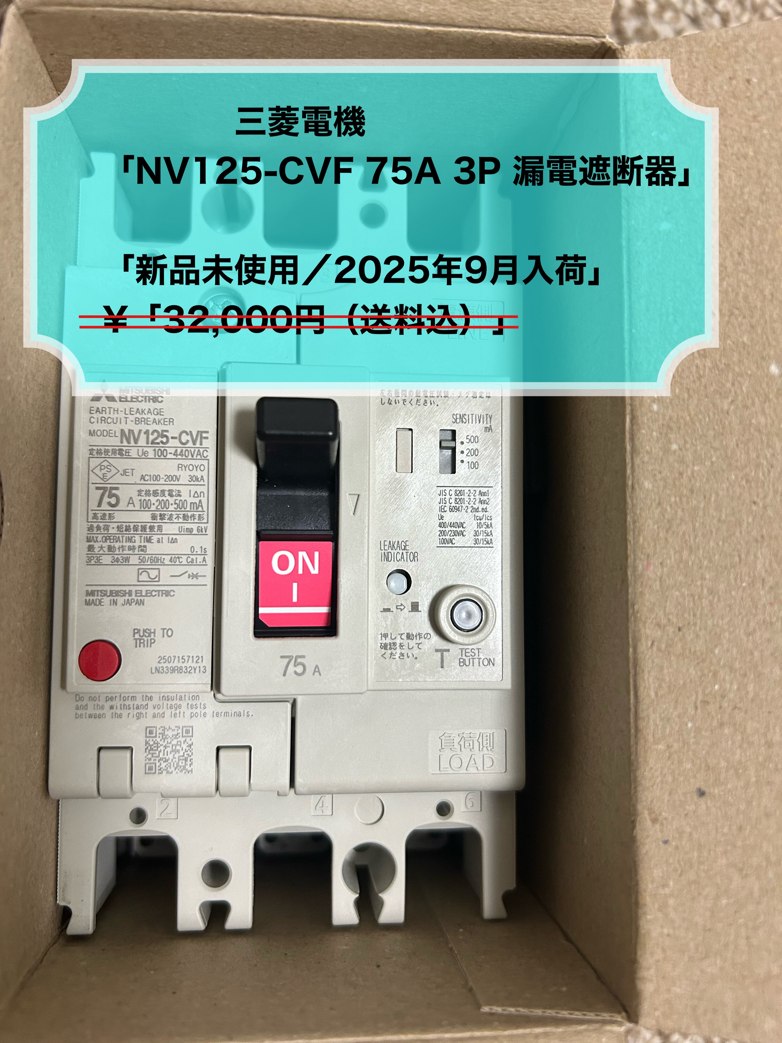 【BASE特価】三菱 NV125-CVF 75A 3P 漏電遮断器 / 新品
